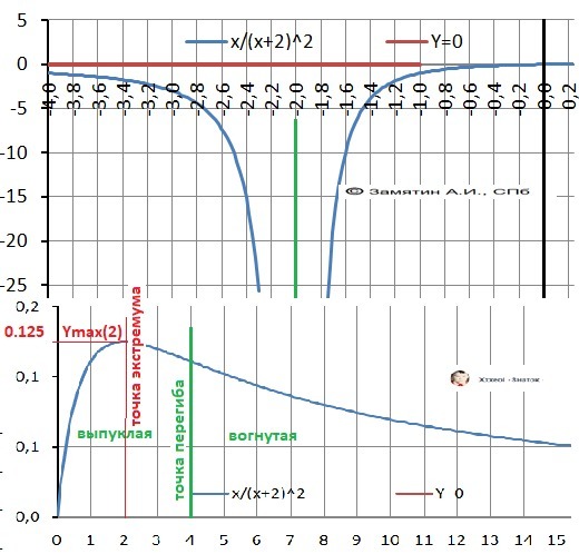 5) Локальный экстремум: Ymax(2) = 1/8 = 0.125