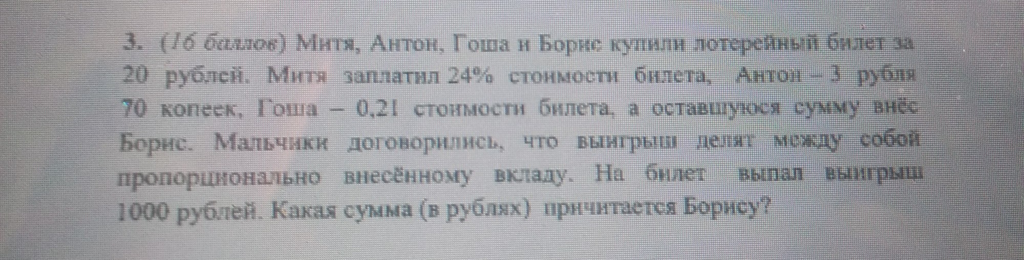 7) 1000 * 36,5% = 1000 * 0,365 = 365 руб получит Борис