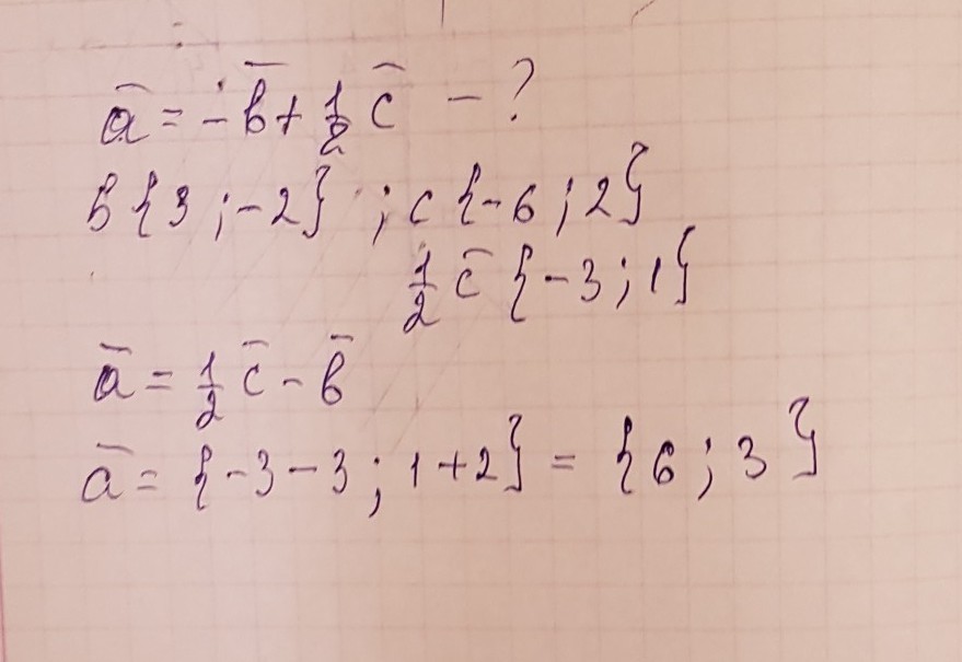 Найдите координаты вектора а , если вектор а= - вектор b + 1/2c , вектор b {3;-2} , вектор c{-6;2}