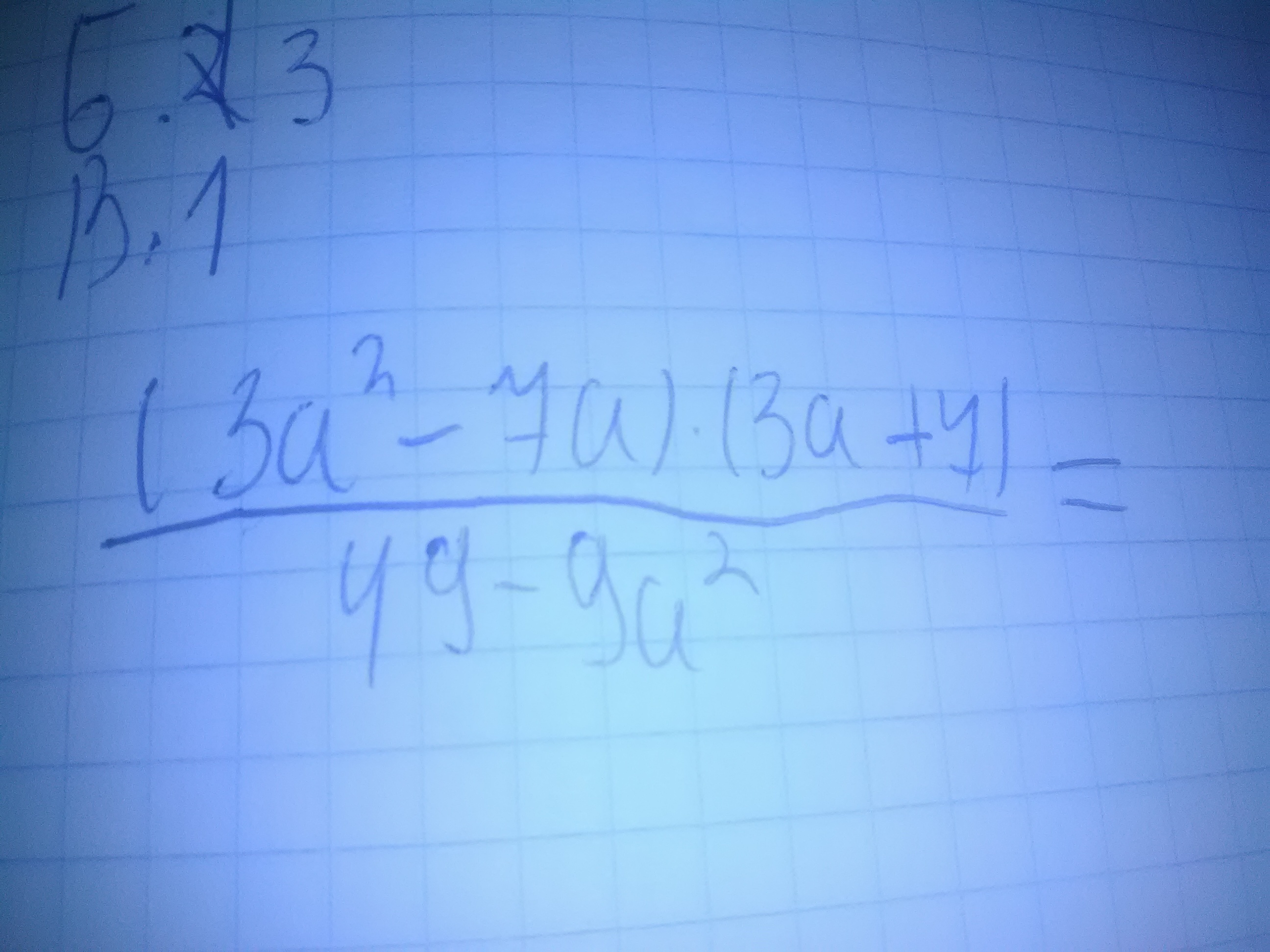 frac{(3 {a}^{2} - 7a)(3a + 7) }{49 - 9 {a}^{2} }  =  frac{a(3a - 7)(3a + 7)}{49 - 9 {a}^{2} }  =  frac{a(9 {a}^{2}  - 49)}{49 - 9 {a}^{2} }  = frac{ -a(49 - 9 {a}^{2})}{49 - 9 {a}^{2} }  = - a