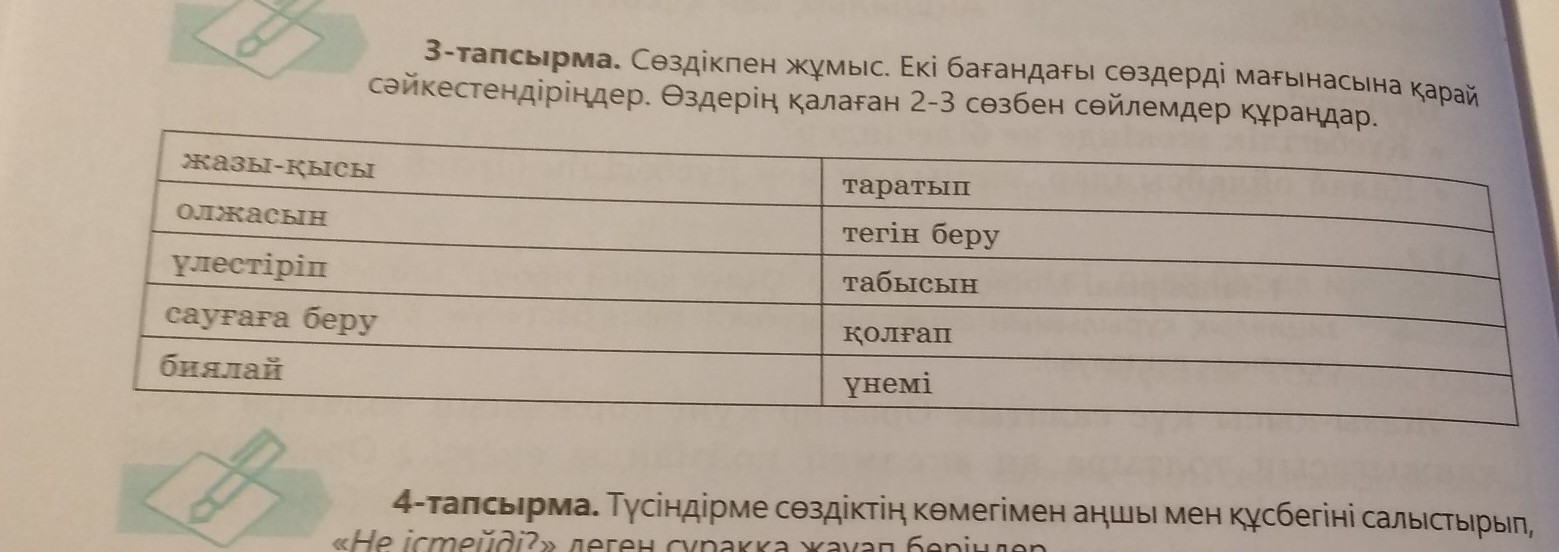 сөздікпен жұмыс. Екі бағандағы сөздерді мағынасына қарай сәйкестендіріңдер. Өздерің қалаған 2-3 сөзбен сөйлемдер құраңдар. ПОМОГИТЕ