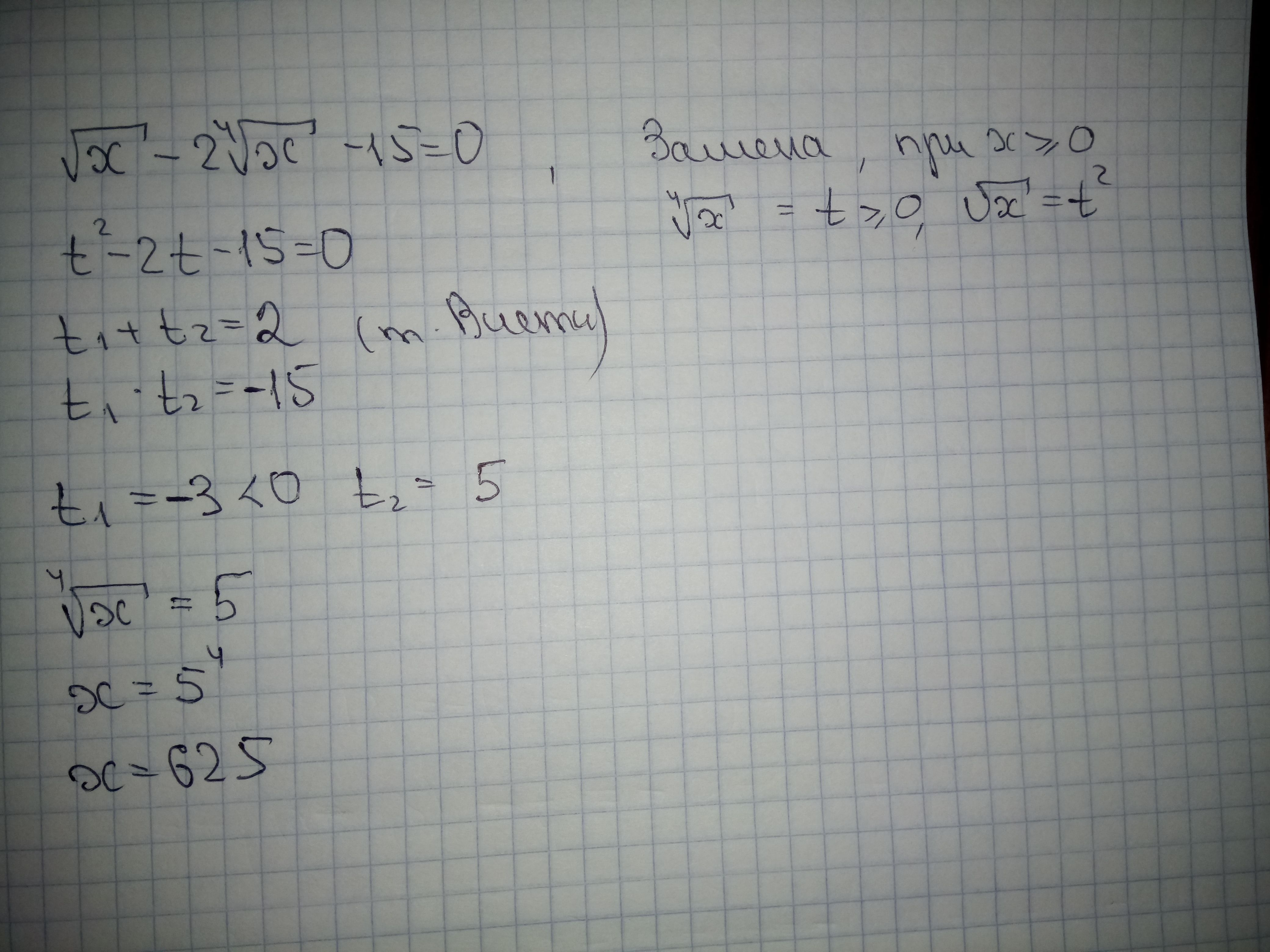 D = (-2)² - 4 * (- 15) = 4 + 60 = 64 = 8²