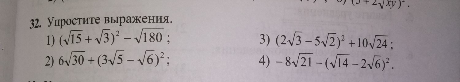 (√15 + √3)² - √180 = (√15)² + 2*√15*√3 + (√3)² - √180 =