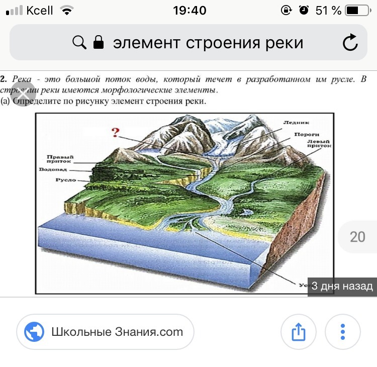 Элемент строения реки на этой картинке - это исток.