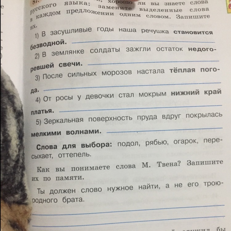 4)Нижний край платья. -подол. 5)Зеркальная поверхность пруда вдруг покрылась мелкими волнами. -рябью.
