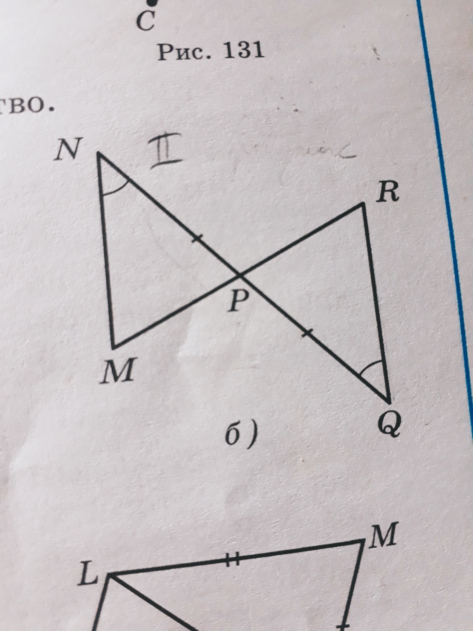 вертикальные углы при вершине Р равны, значит по признаку равенства 1й стороны и 2х прилежащих к ней углов