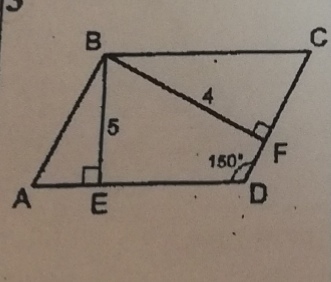 Т.к. угол С равен 30 градусов ( 180-угол=180-150=30). Следовательно, рассм. треугольник ФБЦ- угол Ф=90, Угол C=30 градусов, следовательно БЦ= 8 см . БЦ=АД(по условию) , следовательно, S=BE*AD=5*8=16