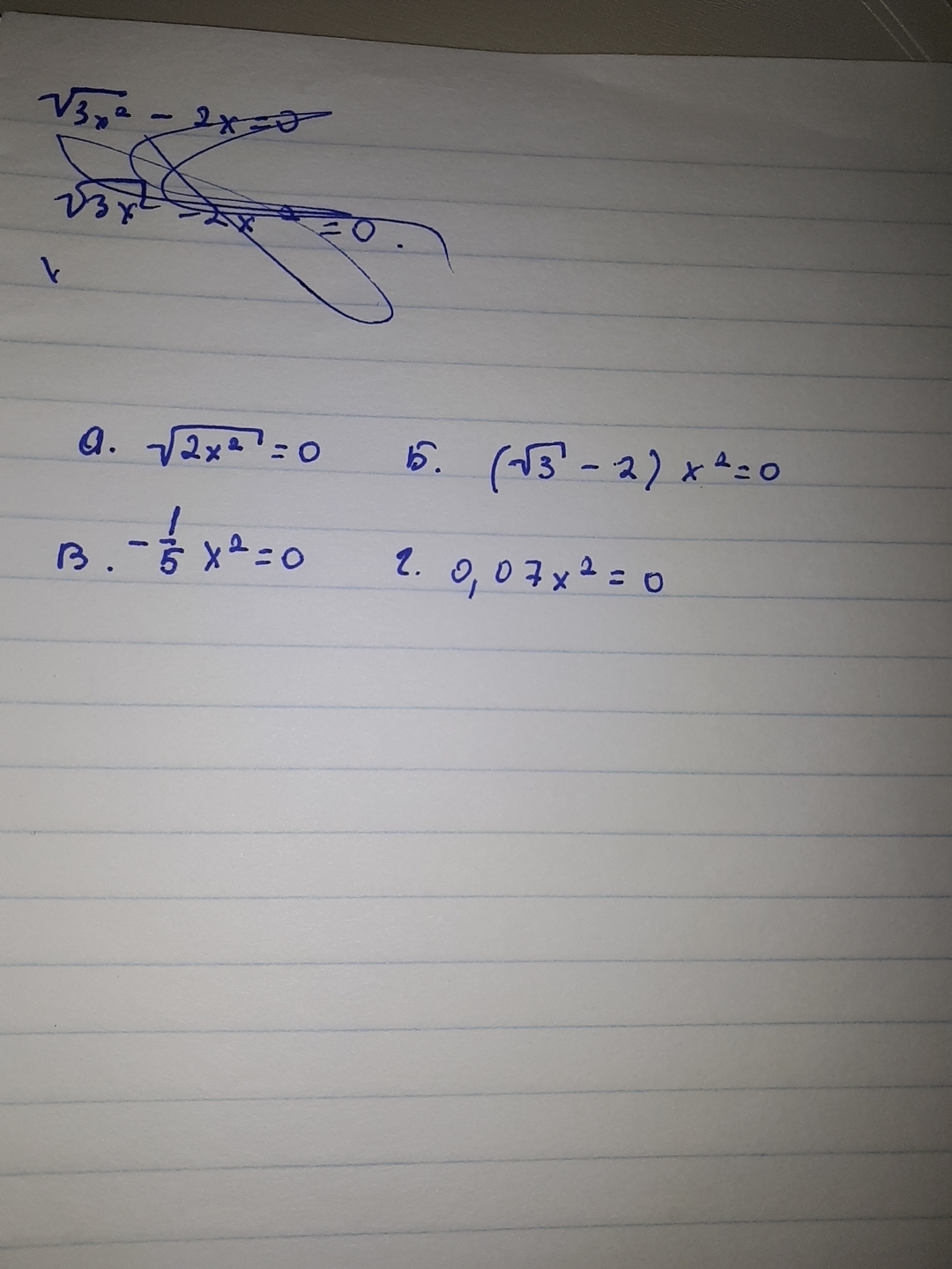 а) 2х квадрат=0 ( делим обе части на корень из 2хквадрат )