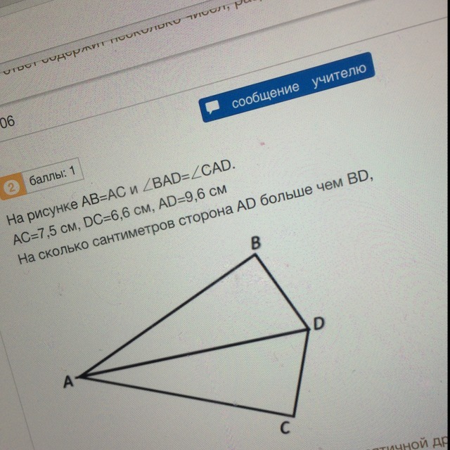 AC= 7,5 см. DC=6,6 см. AD=9,6 см.