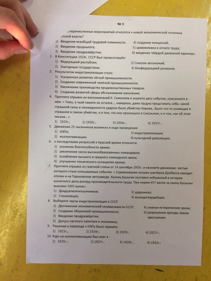 Помогите решить тест по истории по теме "СССР на путях строительства нового общества (1921 - 1939гг.)