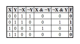 1. Таблица истинности во вложении. Получился xor, или исключающее или: 1 получится тогда, когда ровно один из аргументов равен 1.