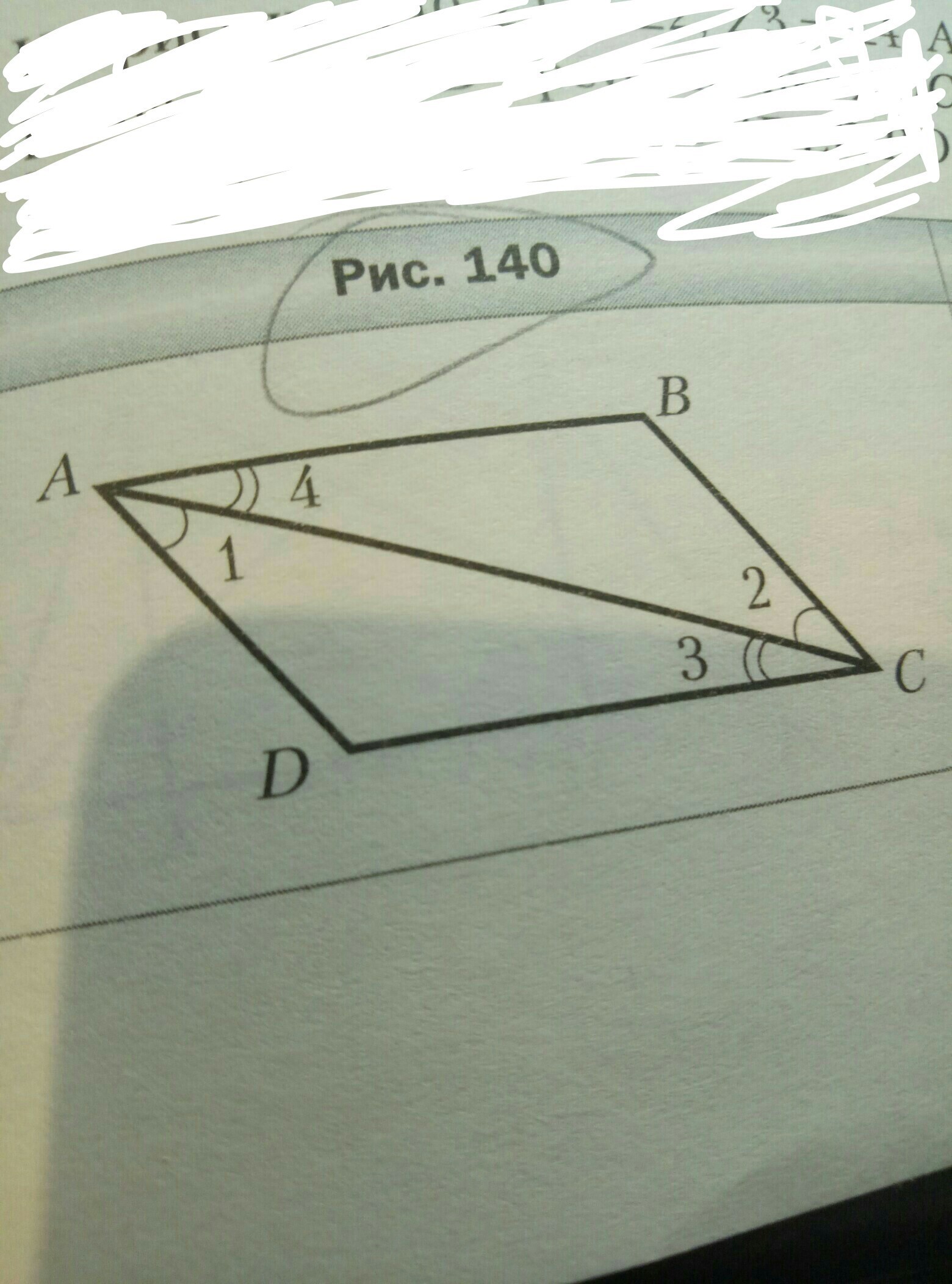 АС - общая сторона, 3 и 4 угол внутренние накрест лежащие при параллельных АD и BC, так же и с углами 2 и 1, они равны