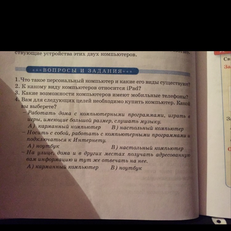 4) В) Настольный компьютер, А) Ноутбук , А) Карманный компьютер.