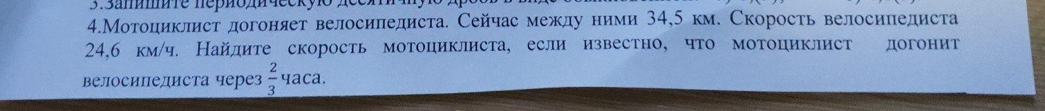 2) 51,75 + 24,6 = 76,35 (км/ч) - скорость мотоциклиста