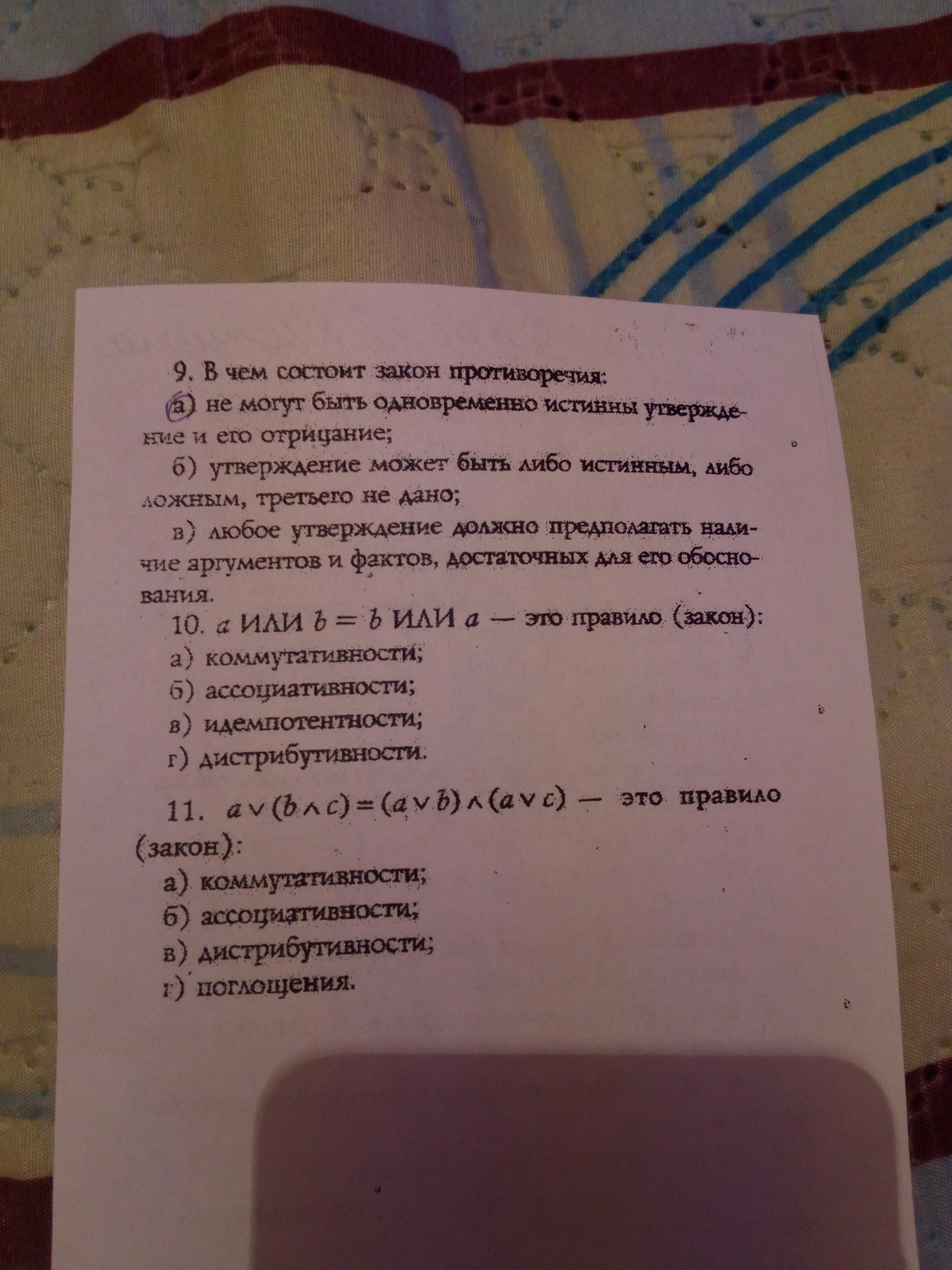 11) Распределительный (дистрибутивный) закон