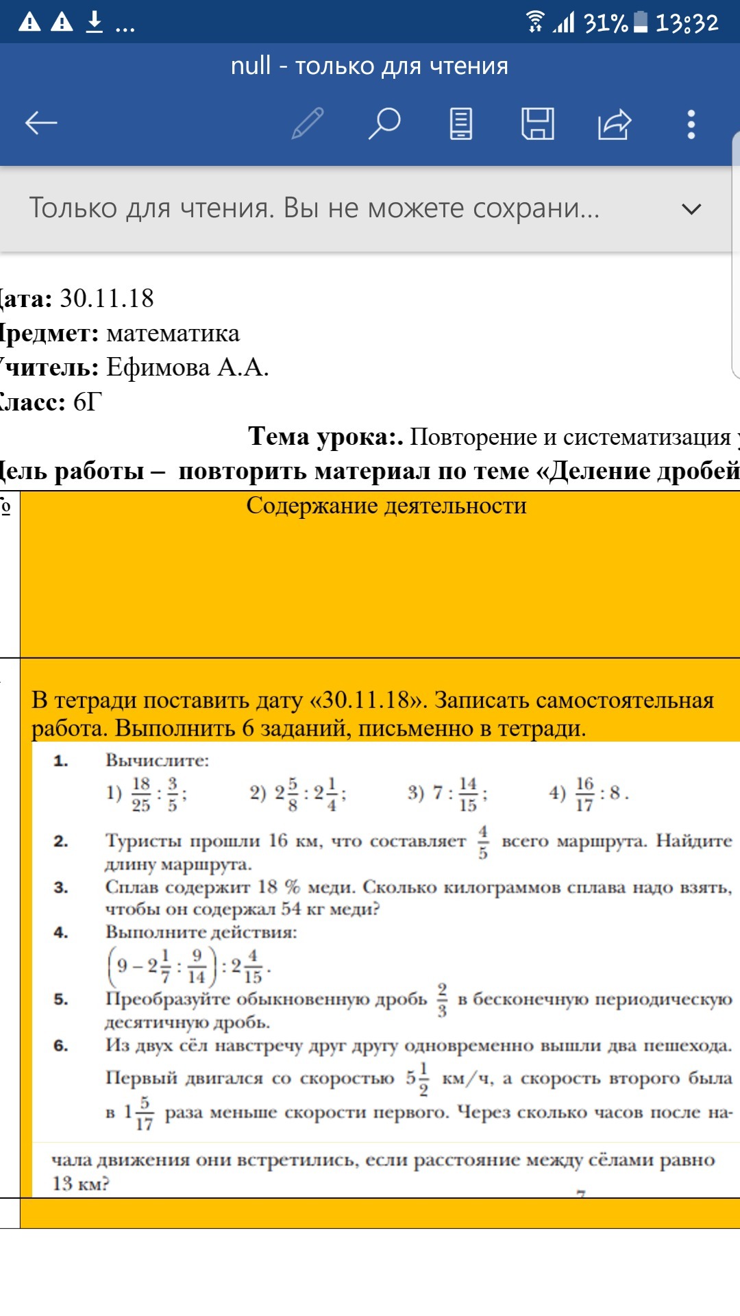 не могу прикрепить...там нужно 5 1/2 : 1 5/17 , потом к полученному + 5 1/2 =... и потом 13 : на то что получилось во 2 действие