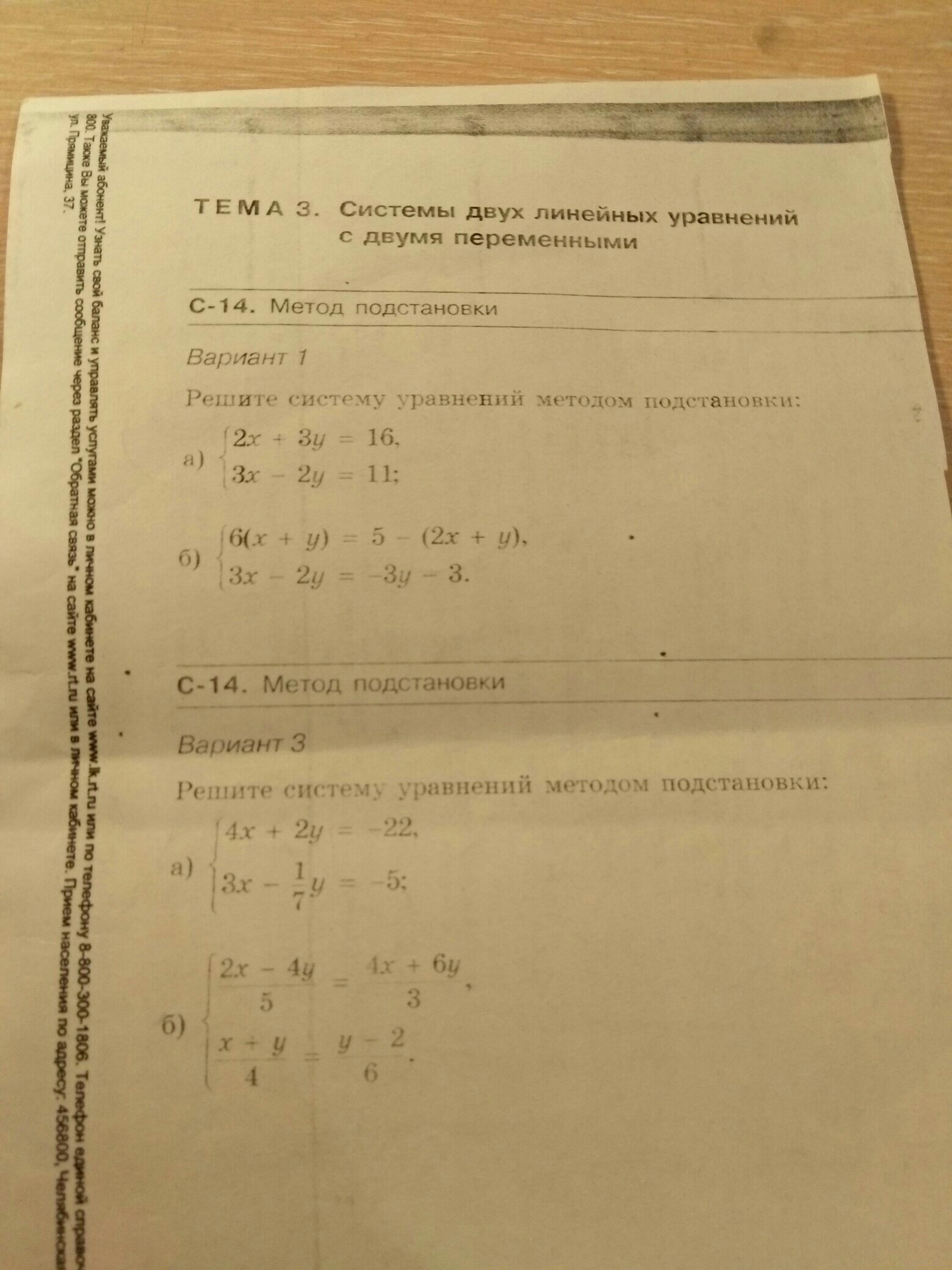 помогите решить " системы двух линейных уравнений с двумя переменными" 1 вариант а), б). И вариант 3 а), б).