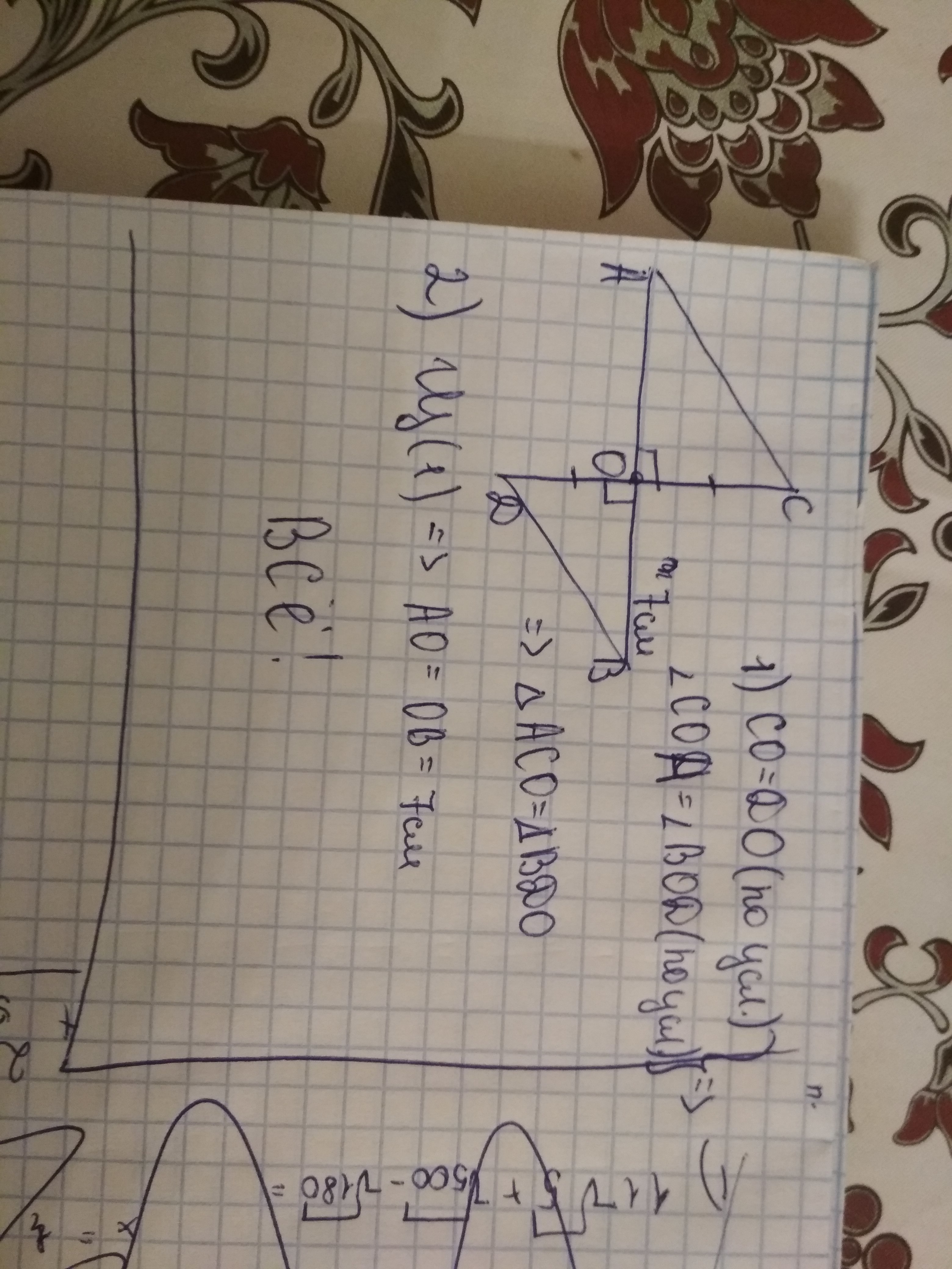 Сначала доказывает что треугольники равны а потом из этого находишь АО