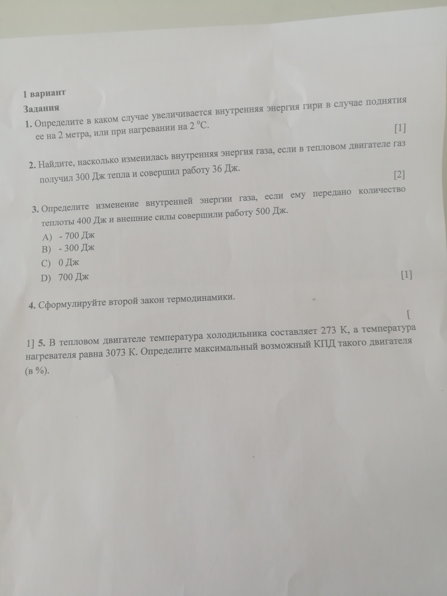Ответ: Внутренняя энергия газа увеличилась на 264Дж