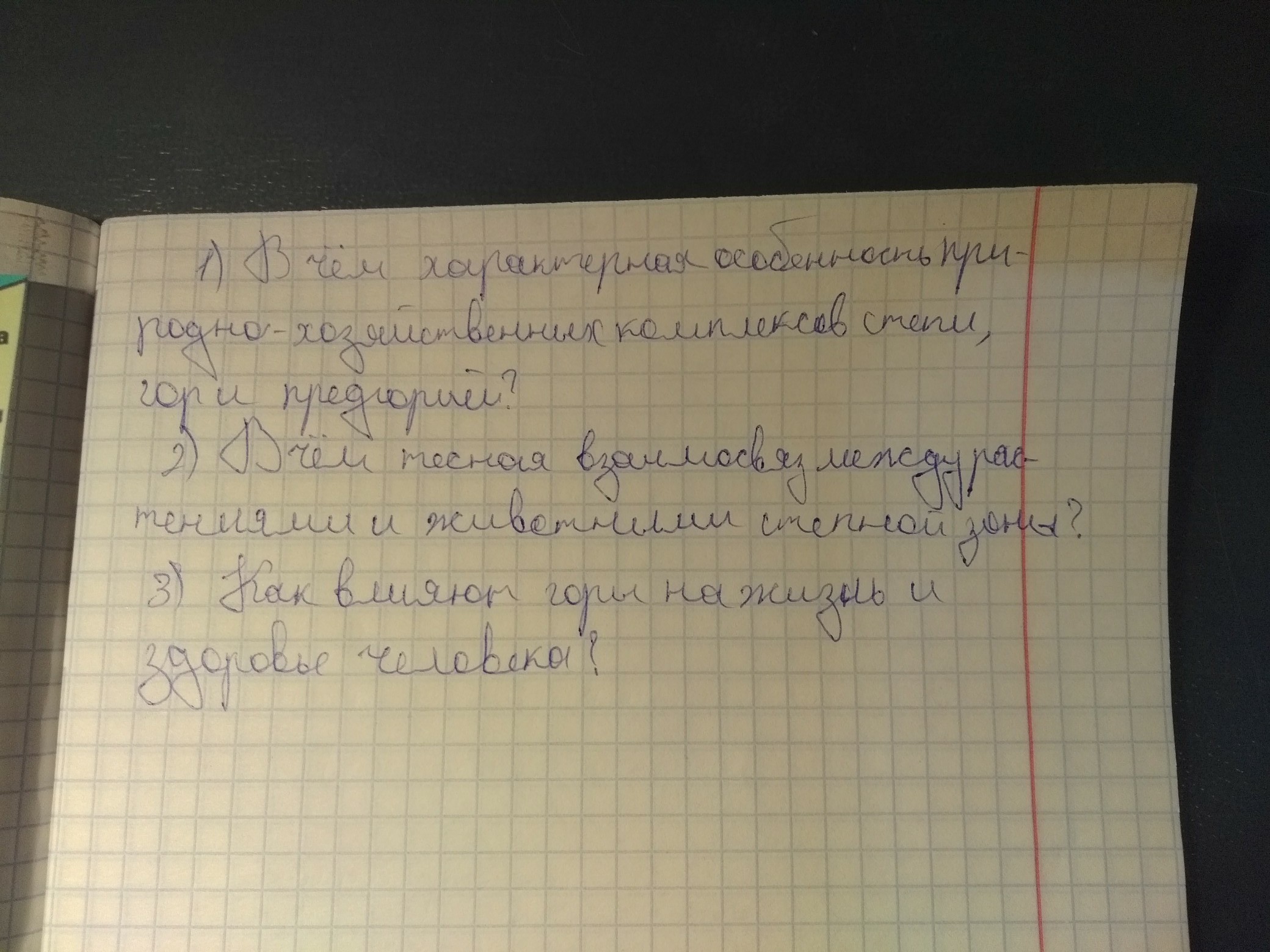 1) В чём характерная особенность природно-хозяйственных комплексов степи, гор и предгорий?