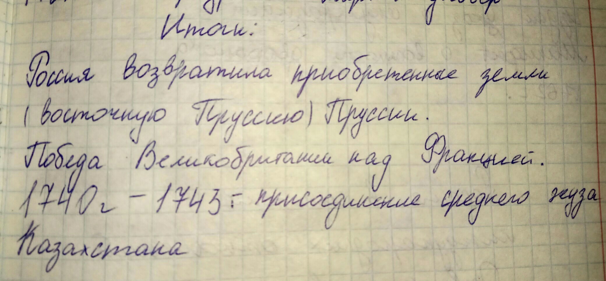 Россия хотела соединить торговые пути Черного и Балтийского морей. До 1761 года Россия завоевывала, пока не скончалась Елизавета Петровна. При власти стал Петр III он и прекратил войну, а Пруссии вернул ее земли и выплатил ущерб ее жителям. После войны территория Прусси увеличилась с 119 тыс кв. км. до 195 тыс.