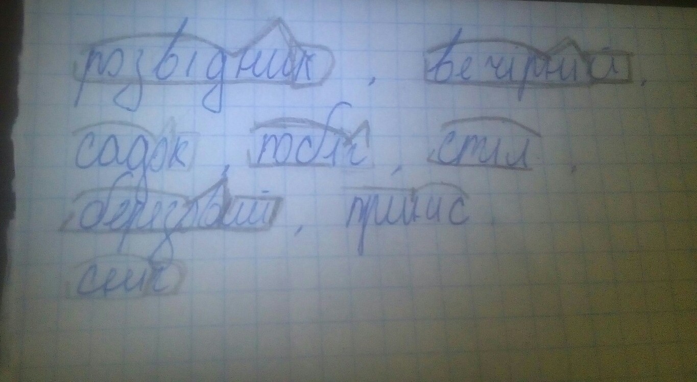 Розбери подани слова за будовою розвидник, вечирний, Садок, побиг, стил, березовий, принис, сниг
