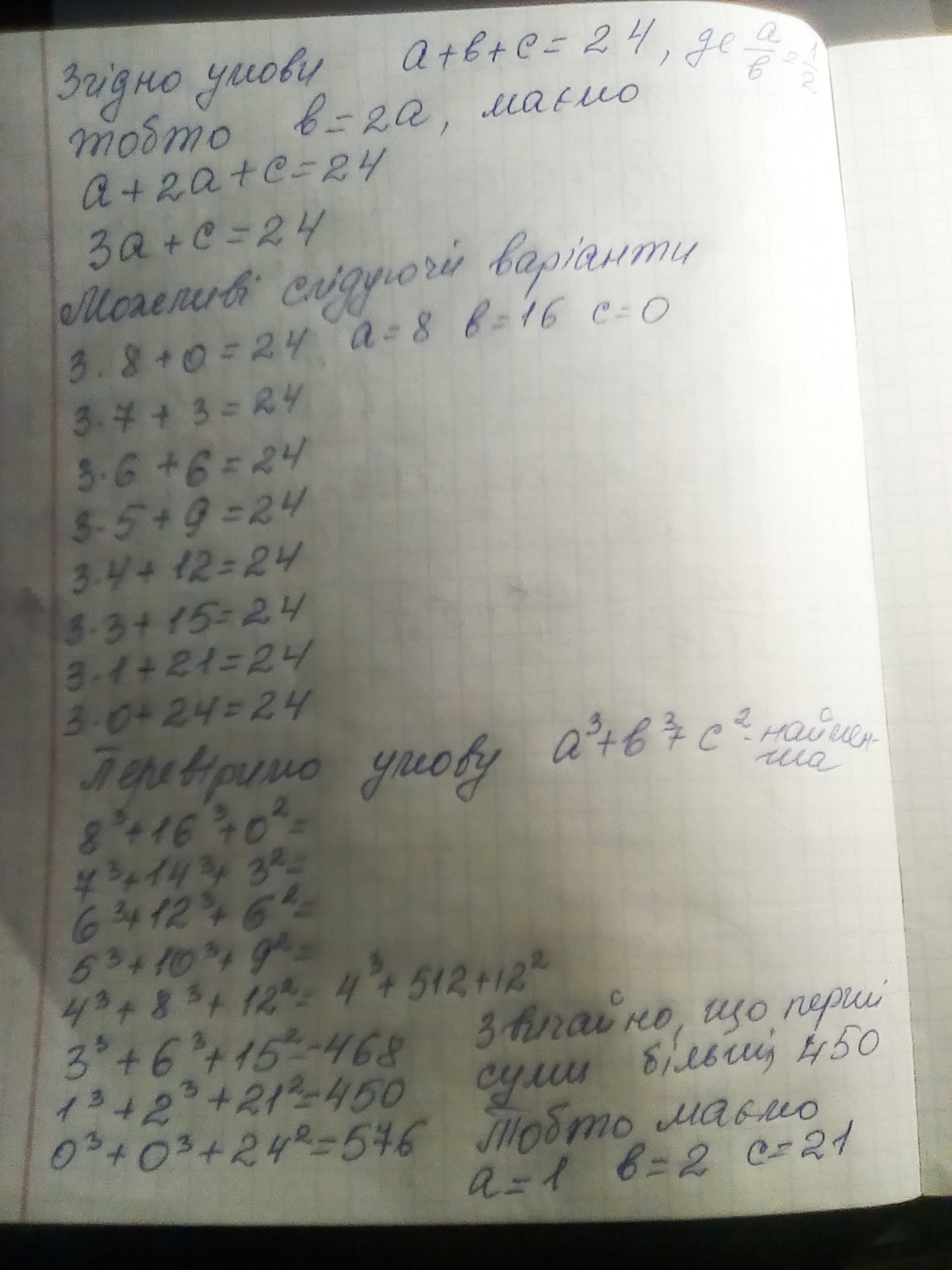 Число 24 подайте у вигляді суми трьох додатних чисел так, що перше число
