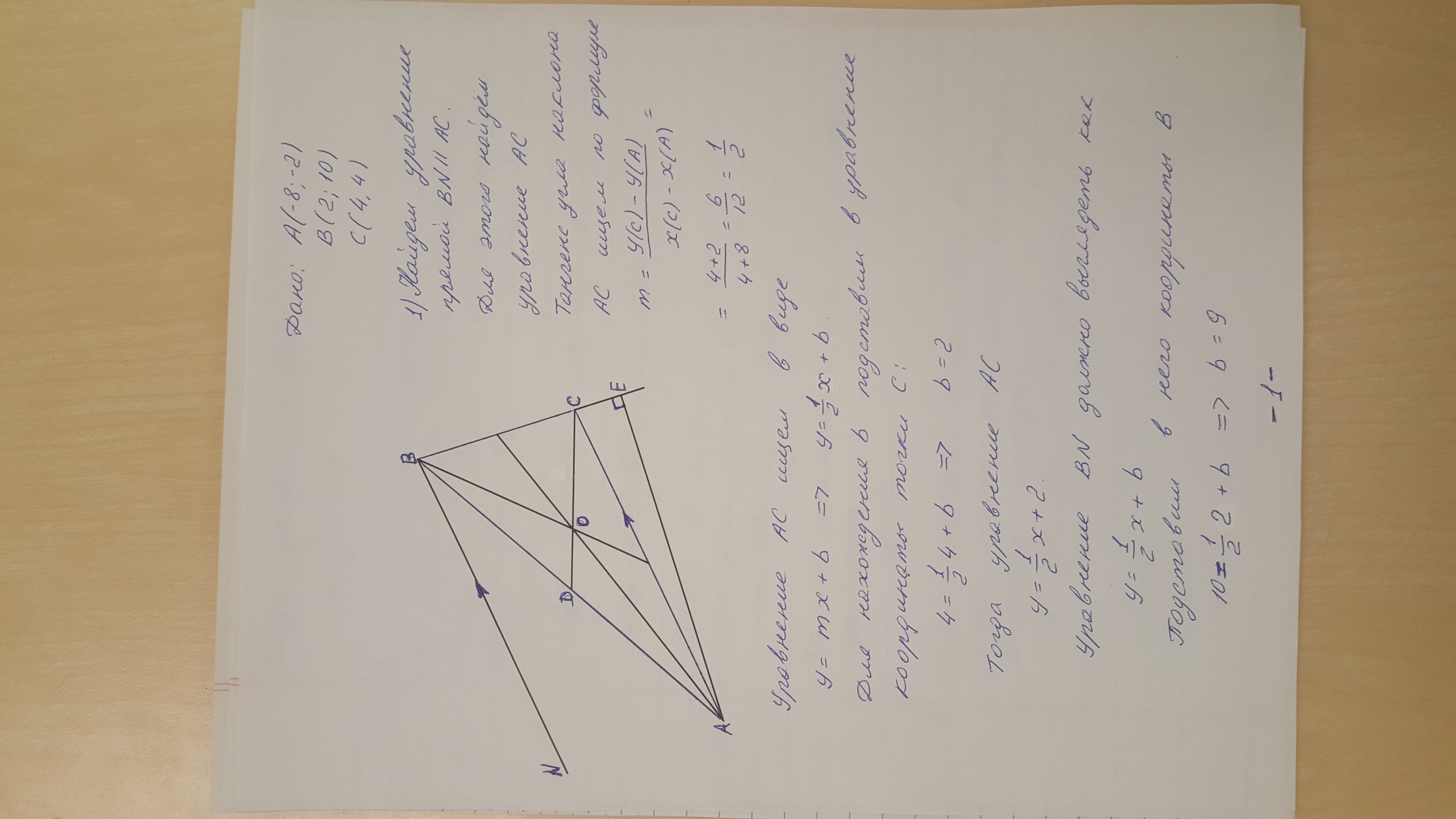Найти 1)уравнение прямой BN, параллельной стороне AC