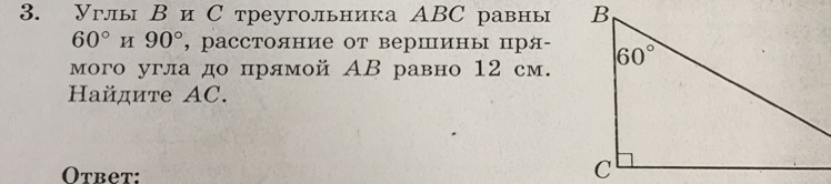 От вершины C к прямой AB проведем высоту СD, которая равна 12 см.