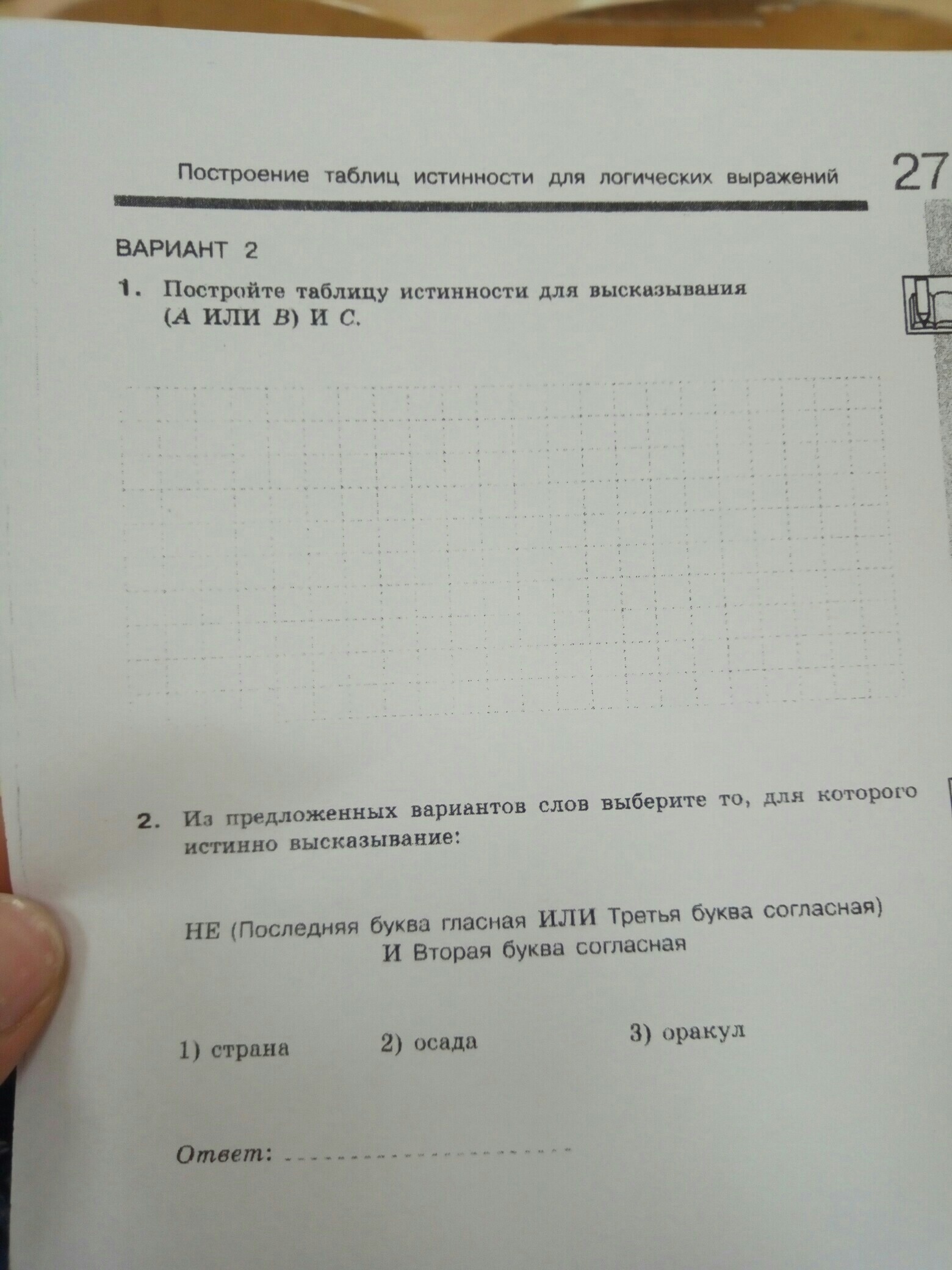 8 строк, 5 столбцов: А,В,С,или,и: