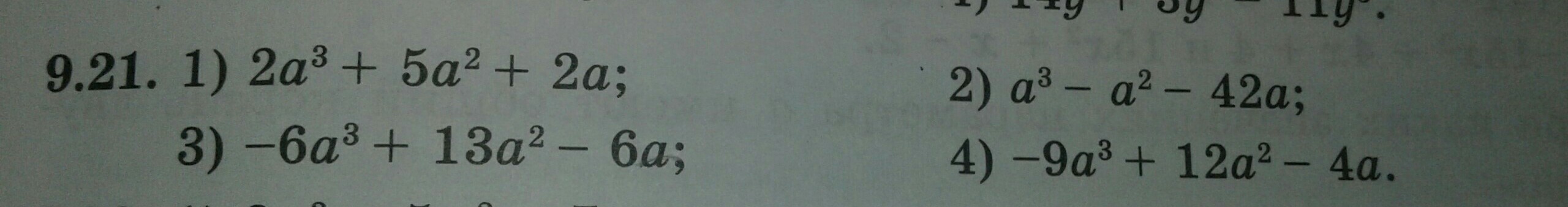 a(2 {a}^{2}  + 5a + 2) \ a( {a}^{2} - a - 42) \  - a(6 {a}^{2}   - 13a  +  6) \  - a(9 {a}^{2}  - 12a + 4)