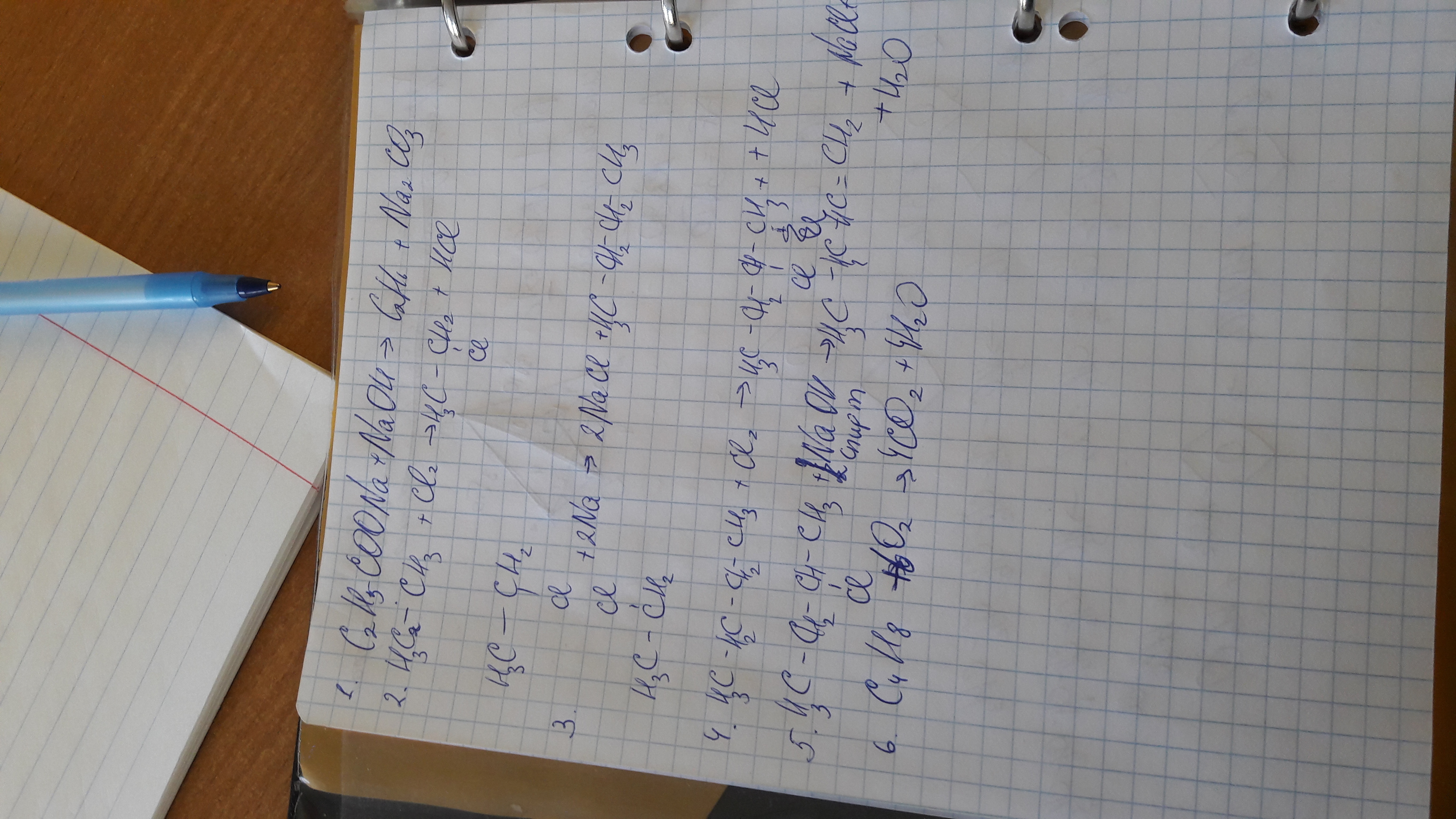 С2H5COONa -> C2H5Cl -> C4H10 -> C4H9Cl -> C4H8 -> CO2