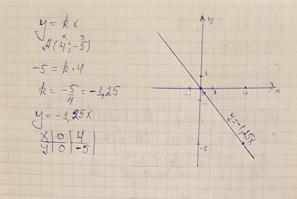 Задайте прямую пропорциональность формулой если известно что ее график проходит через точку А(4;-5) начертите график пожалуйста