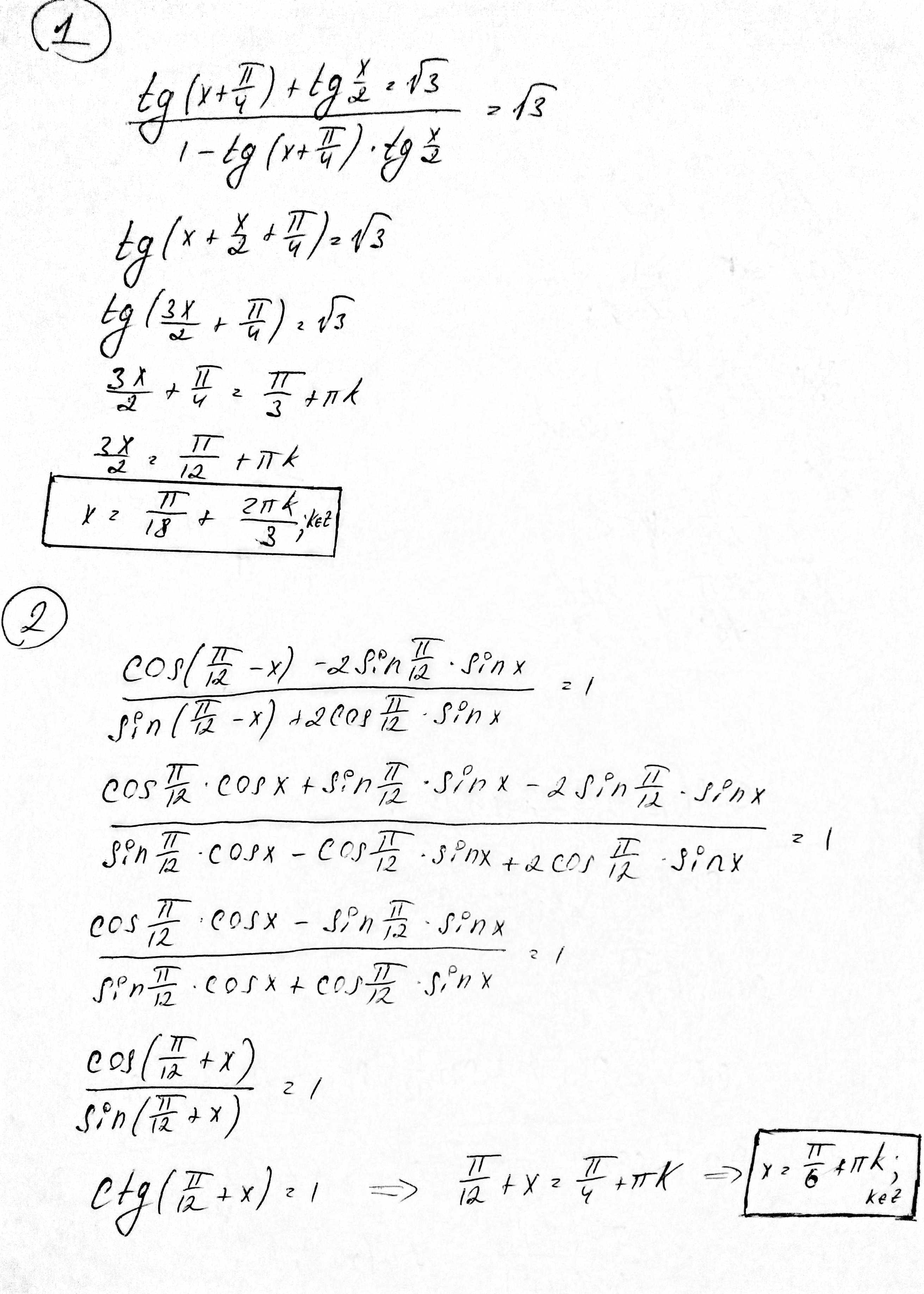 1 . ( tg(x+π/4) +tg(x/2) ) / (1 - tg(x+π/4) *tg(x/2) )