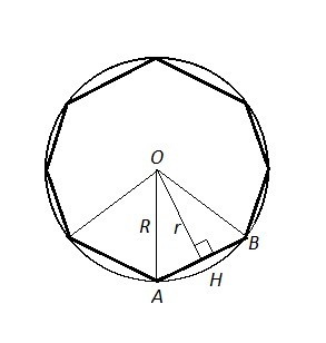 r=R·sin22,5°=√2·sin²22,5°=√2·(1-cos45°)/2=(√2/2)·(1-(√2/2))=