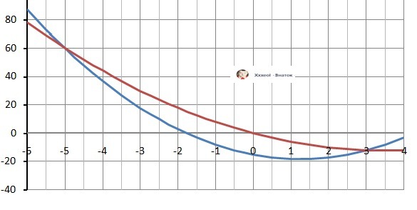 3) D=64, √64 = 8, x1 = 3, x2 = -5 -две точки пересечения.