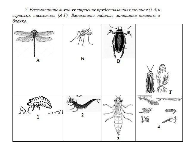 2.1. Найдите соответствие между личинками и взрослыми насекомыми.