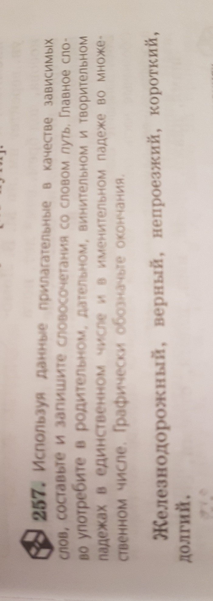 6 класс русский язык номер 257 слова Железнодорожный верный непроезжий короткий долгий помогите