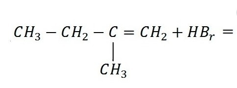 CH3-CH2-C(CH3)=CH2 + HBr = CH3-CH2-C(CH3)Br-CH3