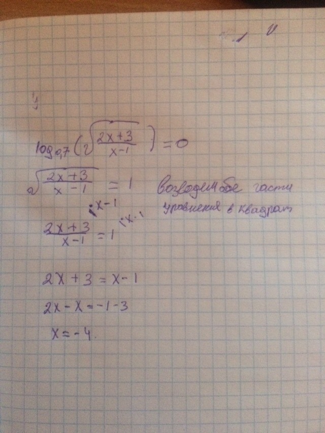 Если логарифм, под знаком которого стоит выражение с переменной, равен 0, то это выражение может быть равным только единице