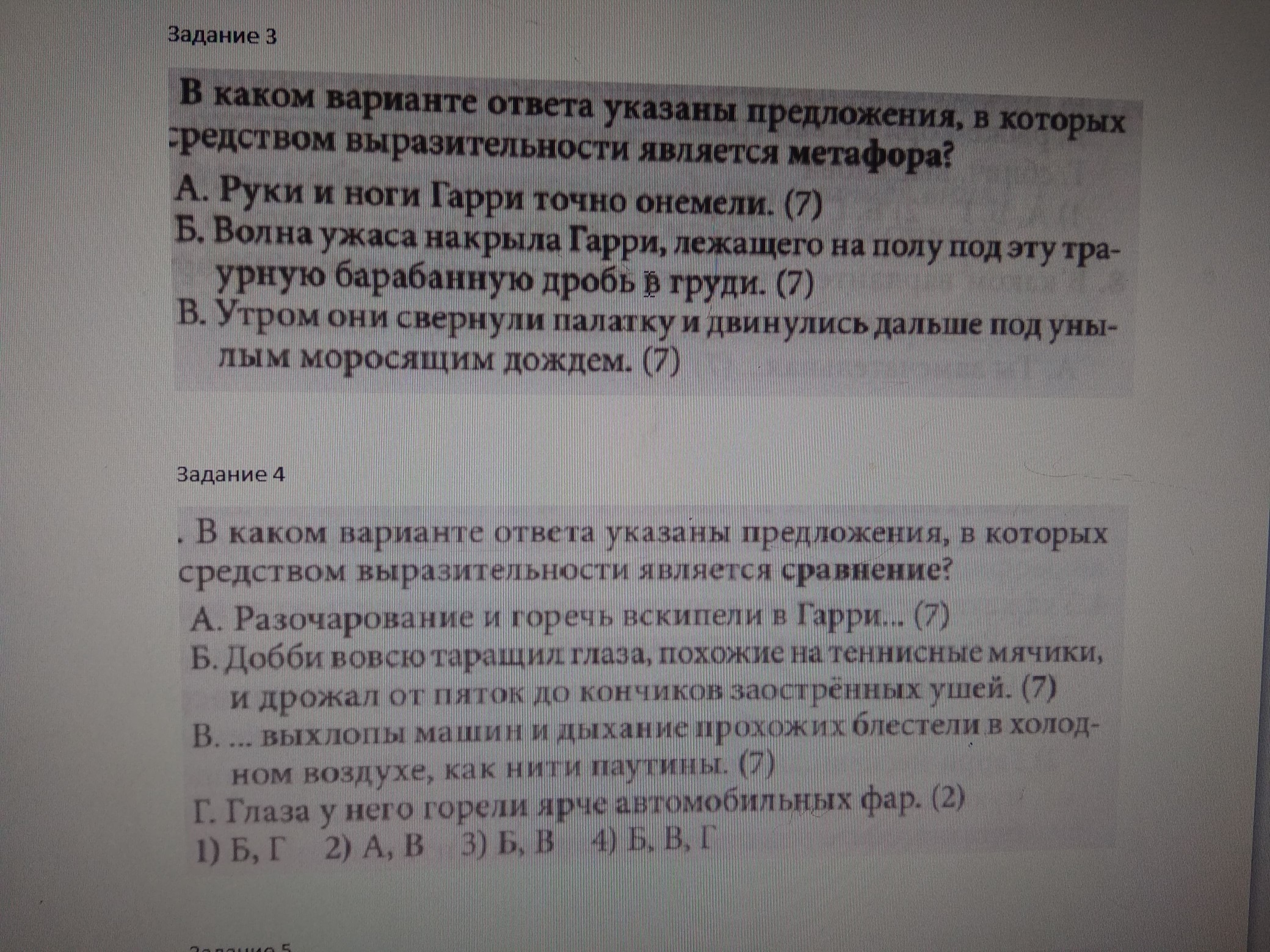 в 4 задании ответ В, так как сравнение - это сопоставление одного предмета или явления с другим
