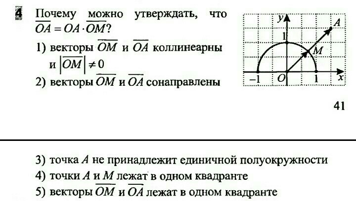 5, Векторы ОМ и ОА лежат в одном квадрате