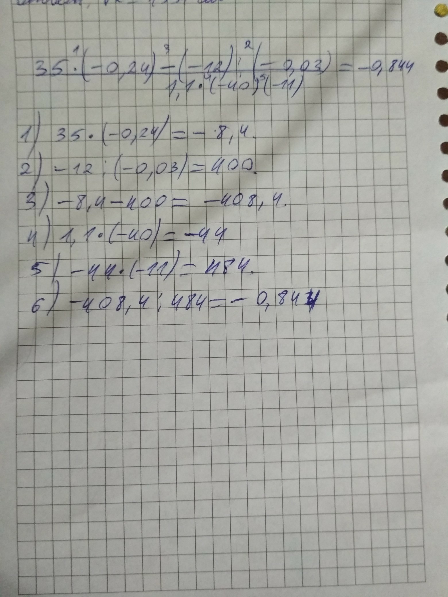35×(-0,24)=-8,4