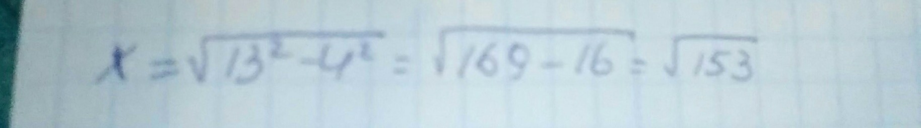 х=корень с 13 в квадрате - 4 в квадрате=корень с 153