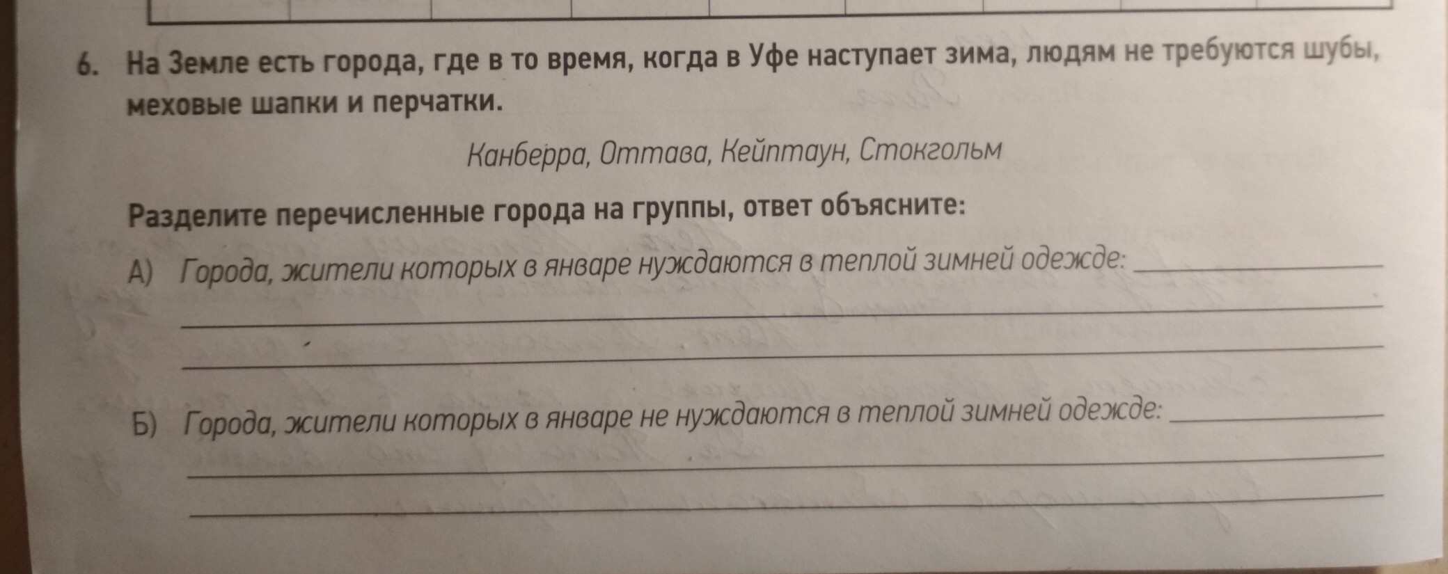 а)Оттава, Стокгольм, так как эти города находятся в северном полушарии, в котором в январе зима.