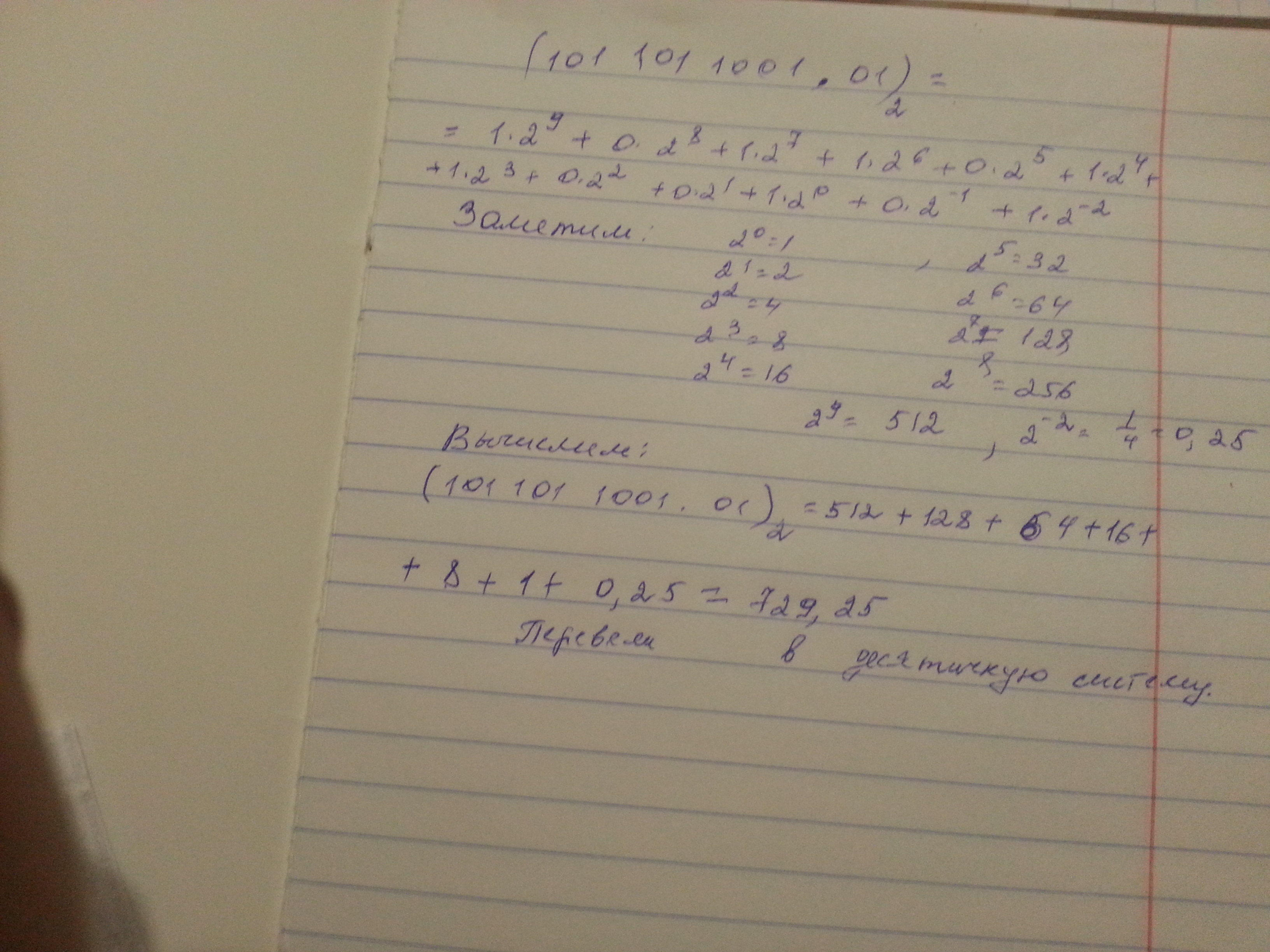 Посмотрите,там нужно только надо вычислять,степени идут от 2^0 слева направо.