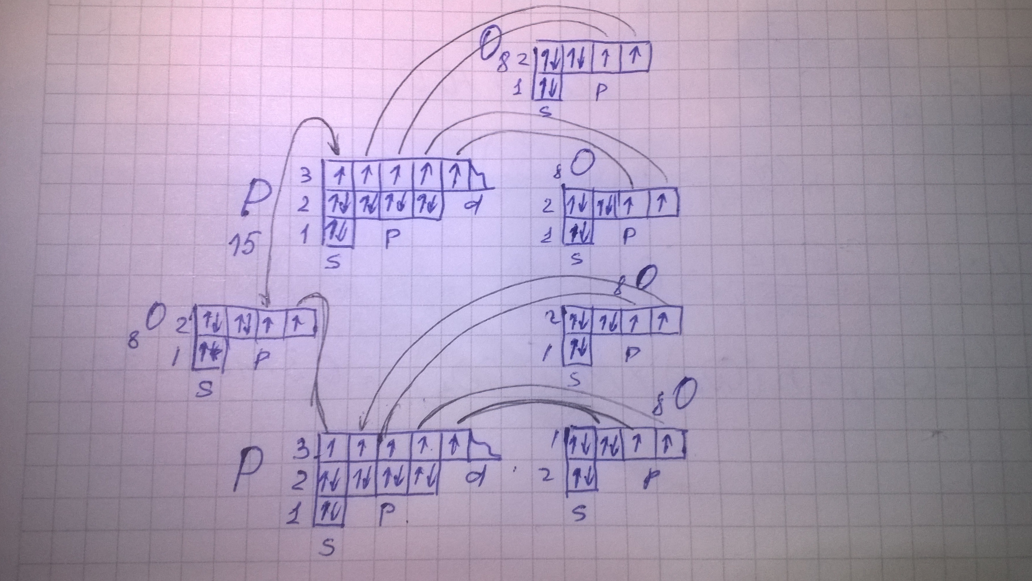 В образовании ковалентных связей в оксиде Р2О5 участвуют 20 электронов 10 со стороны фосфора и 10 электронов кислорода. Причем, у атомов фосфора происходит распаривание s-электронов последнего электронного уровня на d-подуровень. Схематично изображено на рисунке.