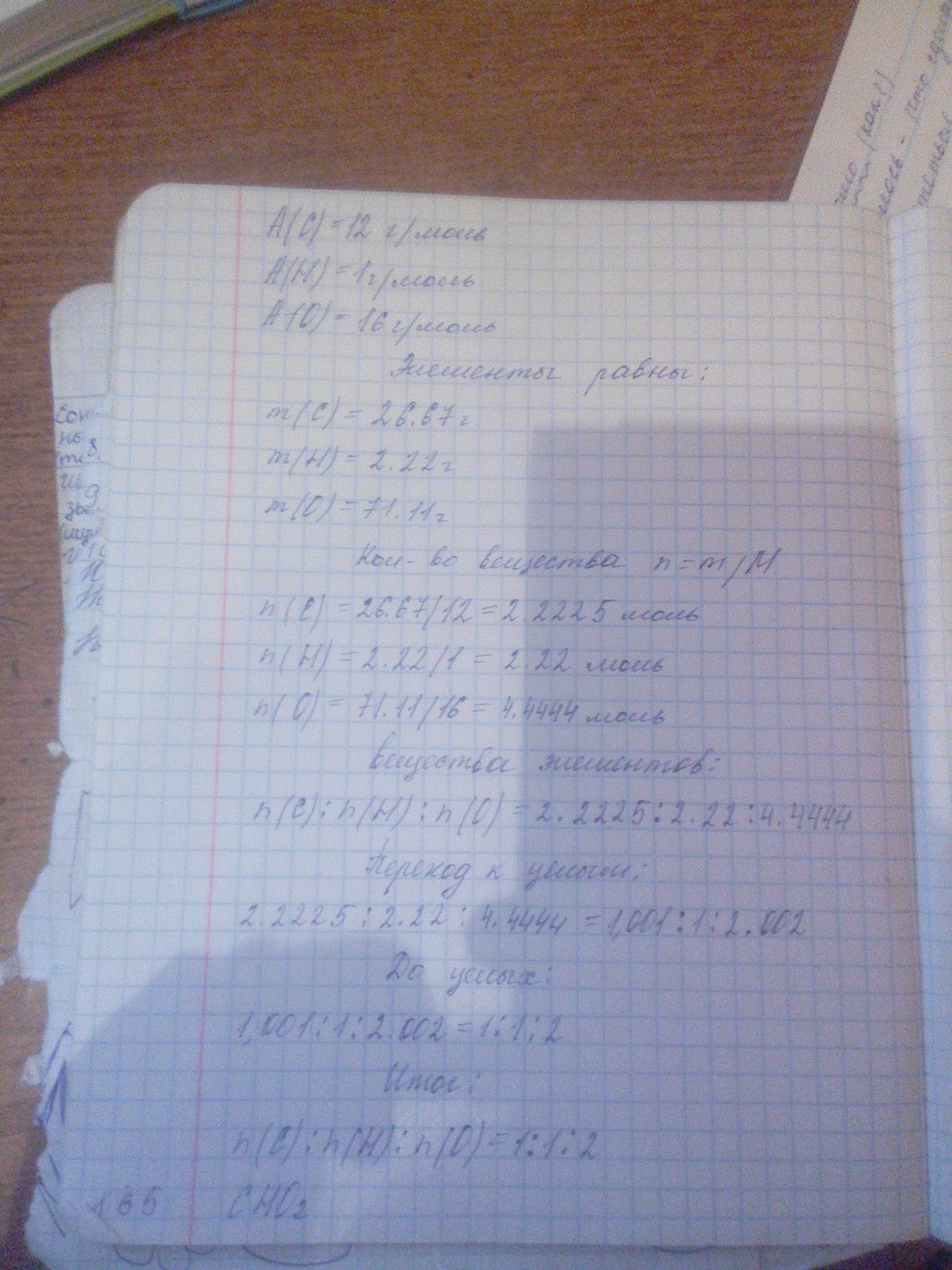 Выведите молекулярную формулу вещества, содержащего 2.22% водорода, 26.67%углерода и 71.11% кислорода, если молярная масса вещества 90г/моль