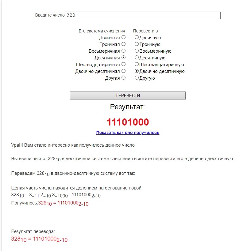 Для перевода десятичного числа в двоичную систему его необходимо последовательно делить на 2 до тех пор, пока не останется остаток, меньший или равный 1. Число в двоичной системе записывается как последовательность последнего результата деления и остатков от деления в обратном порядке.