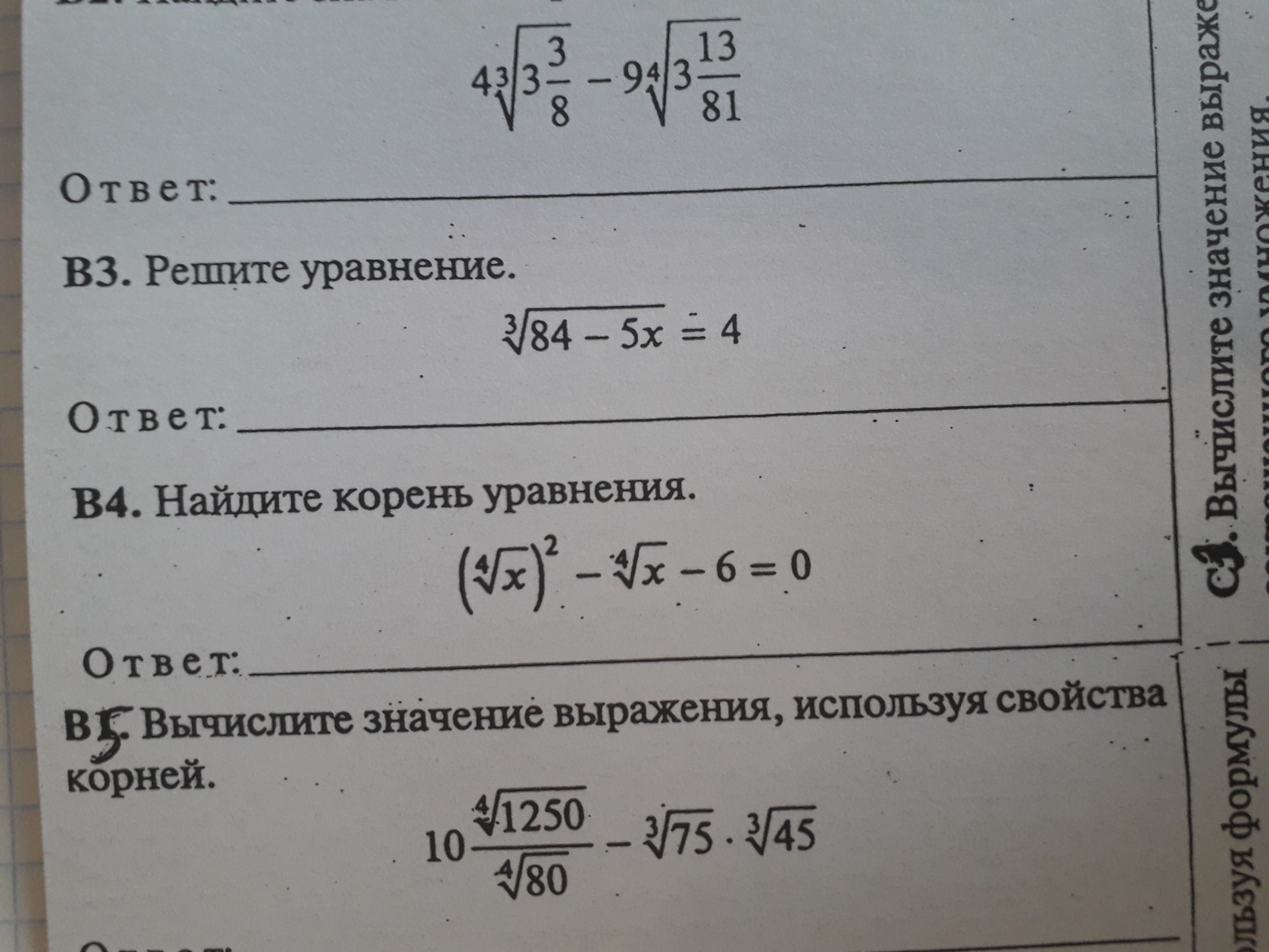 10frac{sqrt[4]{1250} }{sqrt[4]{80} }-sqrt[3]{75}*sqrt[3]{45}=10sqrt[4]{frac{1250}{80} } -sqrt[3]{25*3*5*9}=10sqrt[4]{frac{5^{4}*2 }{2^{4}*5 } }-sqrt[3]{5^{3}*3^{3}}=10*frac{5}{2}*sqrt[4]{frac{2}{5} }-5*3=25sqrt[4]{0,4}-15